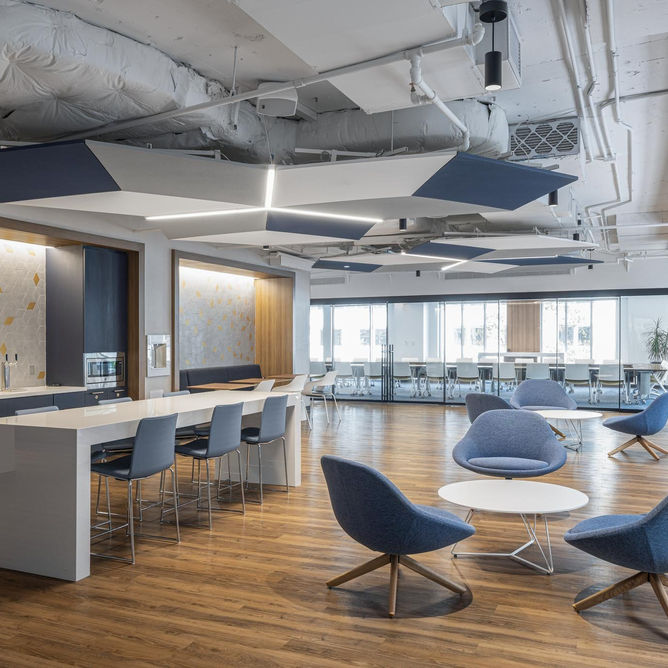Amenity spaces at 1750 H have been reimagined to support how work happens today.